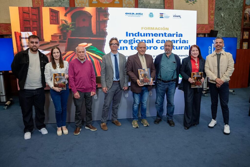 23 de marzo de 2026. El Cabildo de Tenerife, a través de la Empresa Insular de Artesanía, y ecca.edu ha renovado el convenio de colaboración, por segundo año consecutivo, para ofrecer el curso “La indumentaria regional canaria un tesoro cultural”. Esta formación tiene como objetivo preservar, difundir y potenciar la vestimenta tradicional canaria, convirtiéndola en un recurso didáctico indispensable para la enseñanza integral. La iniciativa ha sido presentada hoy (lunes) en rueda de prensa celebrada en el Salón Noble de la Corporación insular a la que han asistido el consejero de Empleo y Educación, Efraín Medina, el director general de ecca.edu, José María Segura SJ; Dulce Rodríguez de la Rosa del Consejo Sectorial Insular de la Indumentaria Tradicional de Tenerife y Vanessa Santana, responsable de Delegaciones Canarias de ecca.edu.